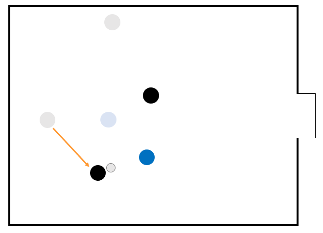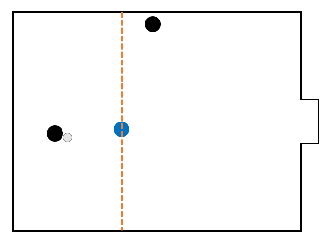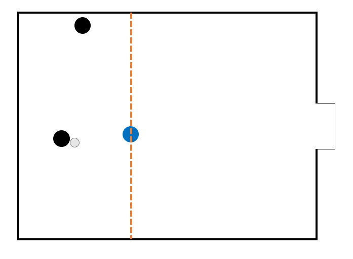 Now when we add a second player, the complexity of the problem has increased. Now the defender has to decide whether to tackle player 1 (original player with the ball) or stay with player 2. However, in this case, is player 2 useful? This brings us to our first principle: