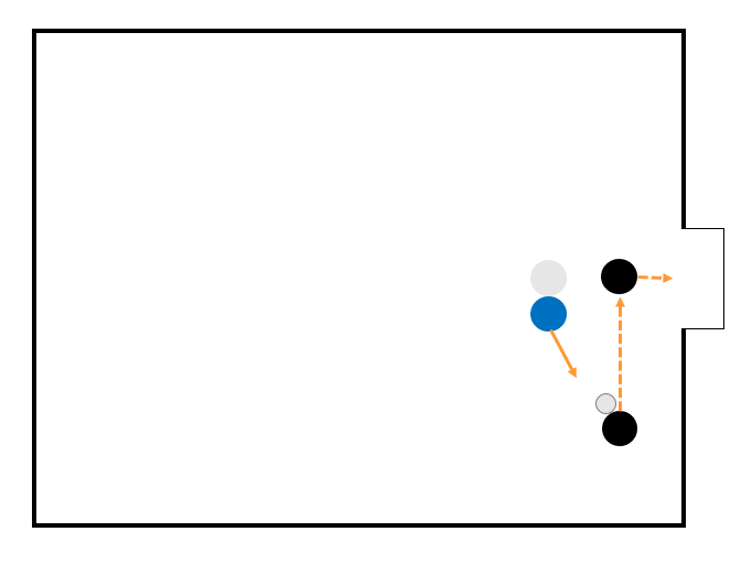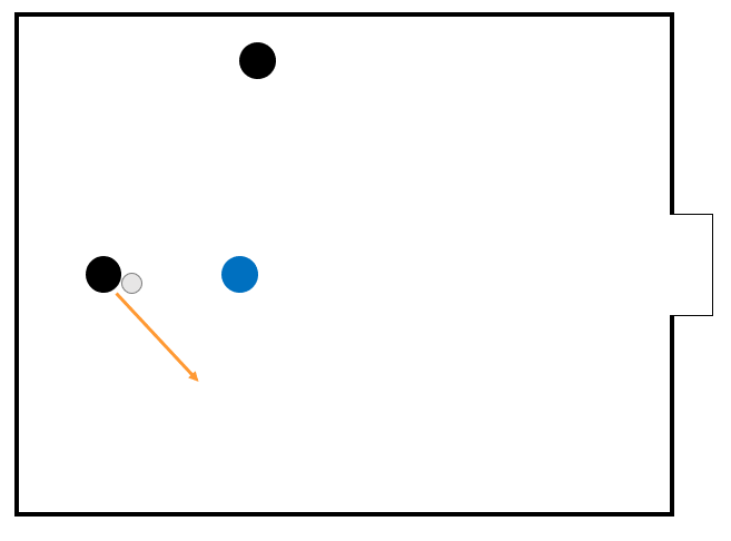 In all of these examples, I just assumed player 1 would be standing still. However, hockey is a dynamic game and everything is constantly moving. So, how can player 1 make this 2v1 easier for player 2 when they receive the ball. In other words, what should player 1 do?